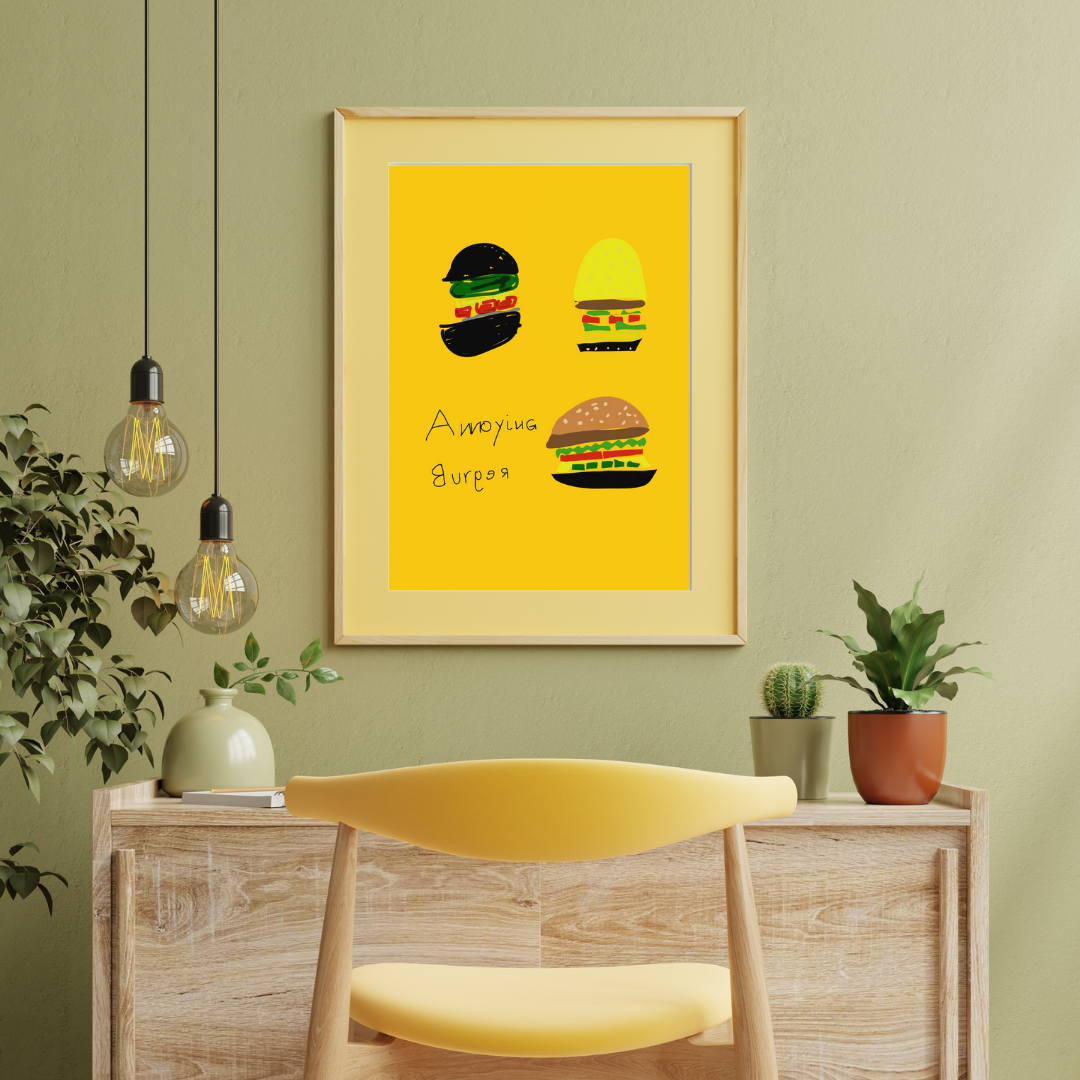 A burger drawn just the way Tatum likes to see it—playful, imperfect, and funny.